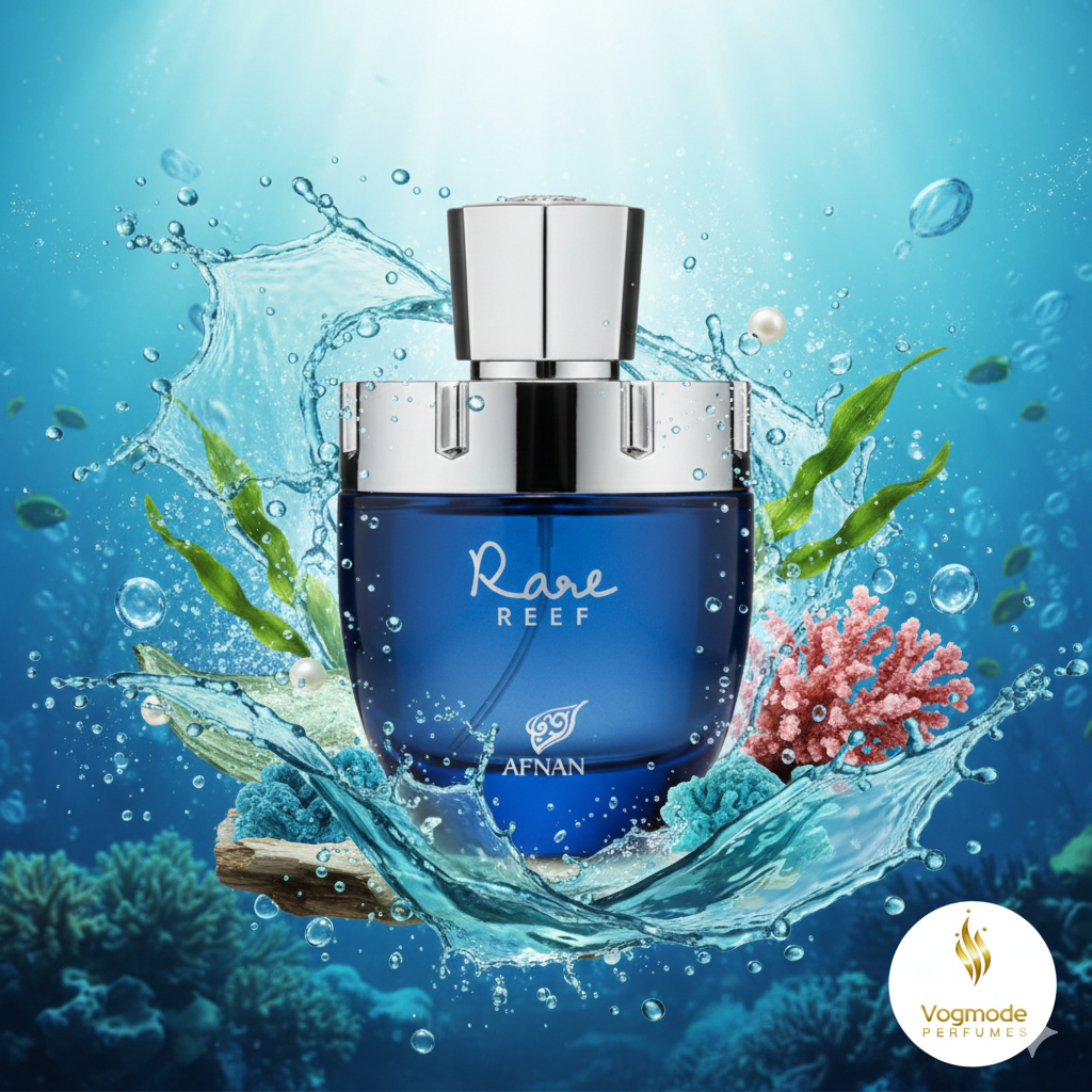 Rare Reef da Afnan é uma fragrância aquática e revigorante que evoca a serenidade e o mistério das profundezas do oceano. Este perfume combina a frescura cítrica com a doçura suculenta de frutas exóticas, resultando em uma experiência olfativa moderna, cristalina e profundamente sofisticada.