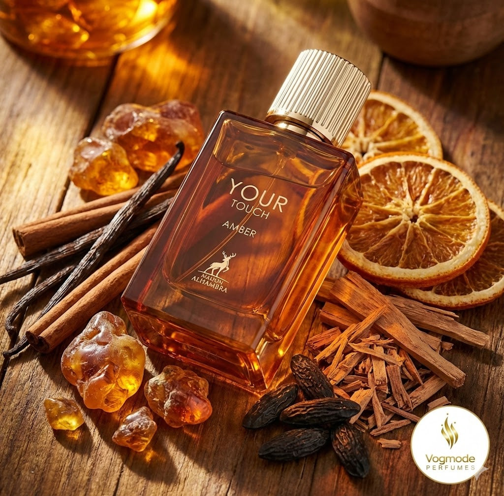 Your Touch Amber da Maison Alhambra é uma fragrância luxuosa e envolvente que combina notas quentes e resinosas com especiarias exóticas. Este perfume cativante captura a verdadeira essência da sofisticação oriental, equilibrando perfeitamente a doçura reconfortante com o calor profundo do âmbar e das madeiras nobres.